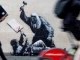 The artwork, which shows a judge hitting a protester with a gavel, was confirmed by the elusive street artist.
